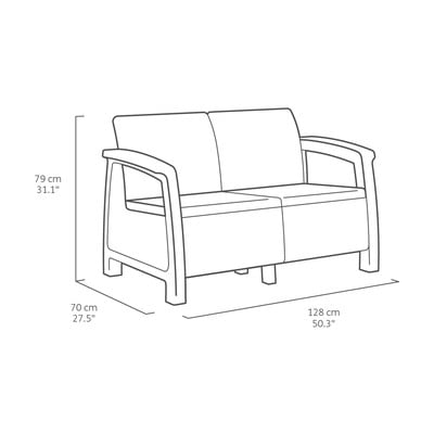 Zostava záhradného nábytku Keter Corfu sa skladá z dvojmiestnej pohovky, 2 kresiel s pohodlným sedákom a stolíka z umelej konštrukcie pripomínajúcej ratan.