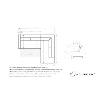 Tmavosivá zamatová rozkladacia pohovka do "U" Miuform Lofty Lilly, pravý roh