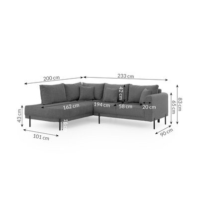 ŽenilkováĽavý roh/do LTmavosiváVhodná pre domácich miláčikov/odolná proti škvrnámŠtvormiestnaŠírka 233 cm