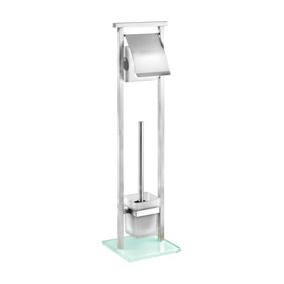 Praktická kombinácia toaletnej kefy a držiaka toaletného papiera. Použité materiály – kov kombinovaný so sklom sú z pohľadu dizajnu dobrým nápadom.