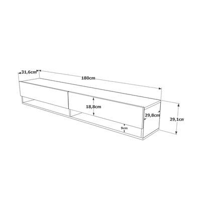 V dekore borovice, z MDF, povrchová úprava: melamín, matný, v tehlovej farbe/v prírodnej farbe, šírka 180 cm, výška 29 cm, hĺbka 32 cm