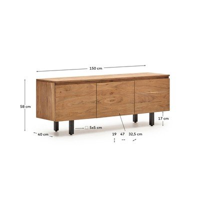 TV stolík UxueZ masívu akácie, povrchová úprava: bielenie, matný, v prírodnej farbe, šírka 150 cm, výška 58 cm, hĺbka 40 cm