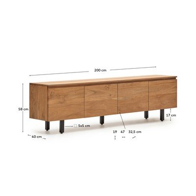 TV stolík UxueZ masívu akácie, povrchová úprava: bielenie, matný, v prírodnej farbe, šírka 200 cm, výška 58 cm, hĺbka 40 cm
