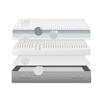 Vrstva s atermickými vláknami zaisťuje priedušnosť a reguluje telesnú teplotu, čo prispieva k chladnému a príjemnému pocitu počas celej noci. Matrac obsahuje aj vrstvu vysokohustotnej viskoelastickej peny, ktorá sa adaptuje na kontúry vášho tela, poskytuje personalizovanú úľavu tlakovým bodom a ergonomickú podporu. Táto pena si navyše po každom použití obnovuje svoj pôvodný tvar, čo zaručuje výnimočnú životnosť.