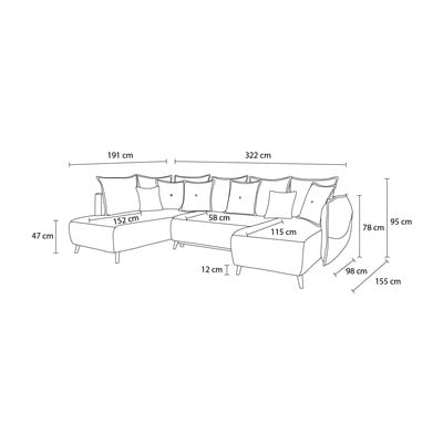 Rozkladacia/s úložným priestoromDo tvaru "U"TyrkysovomodráViacmiestnaŠírka 322 cmHĺbka 191 cmHĺbka sedadla 58 cm