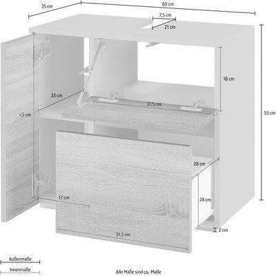 V dekore dubaZ MDFPovrchová úprava: fóliaMatnáAntracitová/v prírodnej farbeŠírka 60 cmVýška 55 cmHĺbka 35 cm