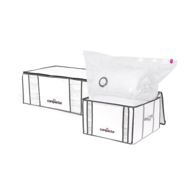Boxy šetria až 75 % úložného priestoru a zároveň chránia uložené textílie pred roztočmi, moľami, prachom, vlhkosťou a plesňami. Vnútorný vak je vyrobený z polyméru s tvarovou pamäťou, vďaka čomu sa po uvoľnení vzduchu vracia do pôvodného stavu bez toho, aby došlo k poškodeniu textilných vlákien.
