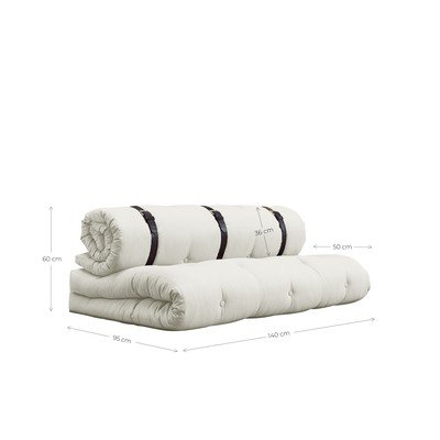 ako posteľ pre jedného, tak aj pohodlnú pohovku. Buckle Up sa skladá z dvoch matracov, pričom ten vrchný je k tomu spodnému pripevnený dvoma koženými pásikmi.