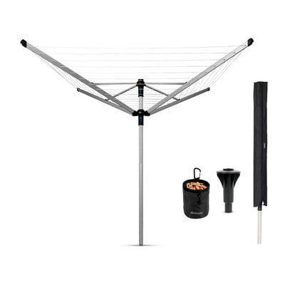 Dobré vedieť: súčasťou balenia je kotviaci držiak s priemerom 50 mm s krytom pre pevné ukotvenie do zeme, vak na štipce s háčikom a ochranný poťah odolný voči vplyvom počasia.