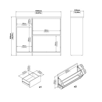 Ponúka dve výklopné dvierka, uzavretú skrinku s policou a zásuvku, celkom poskytujúcu miesto až pre 12 párov topánok. Minimalistický vzhľad s jemnou textúrou dreva dodáva botníku moderný a sofistikovaný nádych.