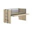 Posteľ je vybavená výsuvným pracovným stolom s priestrannou plochou, ideálna pre domáce úlohy alebo kreatívne činnosti. Pre bezpečnosť dieťaťa je opatrená ochranou proti pádu a pevným rebríkom, ktorý je možné pripevniť na ľavú aj pravú stranu. Priestor pod stolom je možné využiť ako úložný priestor pre voliteľné skrinky.