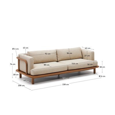 Z teakového drevaTrojmiestnaBéžová/v prírodnej farbeNosnosť 300 kgŠírka 230 cmVýška 74 cmHĺbka 100 cm