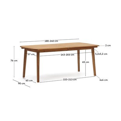 Z masívu akácie, rozkladací, v prírodnej farbe, 90x180 cm, dĺžka po rozložení 240 cm