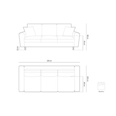 Zamatová, rozkladacia/s úložným priestorom, v petrolejovej farbe, trojmiestna, šírka 235 cm