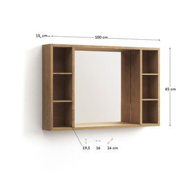 Závesná/so zrkadlom, z teakového dreva, povrchová úprava: lakovanie, v prírodnej farbe, šírka 100 cm, výška 65 cm, hĺbka 15 cm