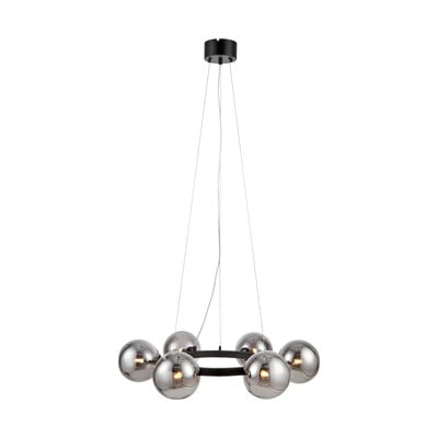 Stropné svietidlo Circle je vyrobené z kovovej konštrukcie, ktorá je rovnomerne obložená dymovo zafarbenými sklenenými svetlami. Tento prémiový kúsok je stelesnením kvalitného spracovania a podmanivého vzhľadu v industriálnom štýle. Práve vycibrený dizajn umne dokreslí celý vzhľad miestnosti a dodá jej originalitu.