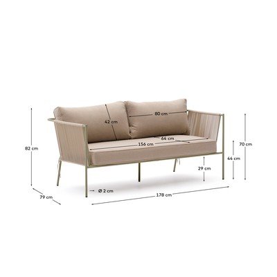 Zivia od značky Kave Home je dvojmiestna záhradná pohovka, ktorá je ideálna na vonkajšie posedenie. Jej sedadlo je ručne pletené z UV-odolného syntetického lana.