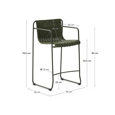 Barová stolička Maurina od značky Kave Home. Konštrukcia z pozinkovanej ocele a ručne tkaný UV-odolný výplet zaisťujú dlhú životnosť a odolnosť voči vonkajším vplyvom.
