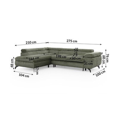 MenčestrováPolohovacia/rozkladacia/s úložným priestoromĽavý roh/do LZelenáVhodná pre domácich miláčikov/odolná proti škvrnámŠtvormiestnaŠírka 275 cm