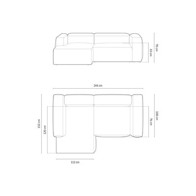 Menčestrová, ľavý roh/s leňoškou, zelená, trojmiestna, šírka 244 cm