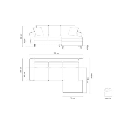 Rohová pohovka KyotoMenčestrová, rozkladacia/s úložným priestorom, pravý roh/s leňoškou, zelená, vhodná pre domácich miláčikov, trojmiestna, šírka 241 cm