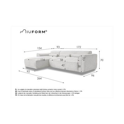 Ľavý roh/s leňoškouZelenáTrojmiestnaŠírka 264 cm