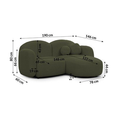 Z textílie bukléPravý roh/s leňoškouZelenáVodoodolná/odolná proti škvrnámDvojmiestnaŠírka 190 cm