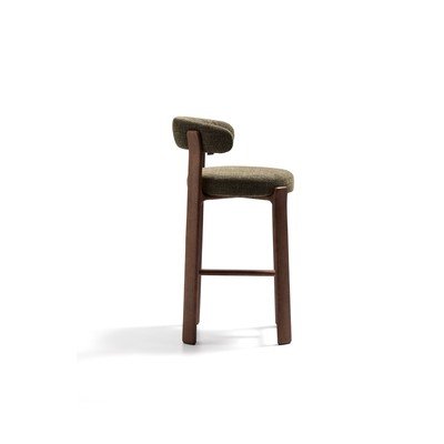 Barová stolička Granite od značky Kave Home. Je vyrobená z certifikovaného recyklovaného materiálu a dreva z udržateľného lesného hospodárstva.