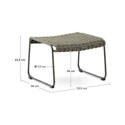 Záhradná podnožka Maurina od značky Kave Home. Vďaka pozinkovanej oceľovej konštrukcii a UV-odolnej ručne tkanej šnúre je ideálna na stopercentné vonkajšie použitie.