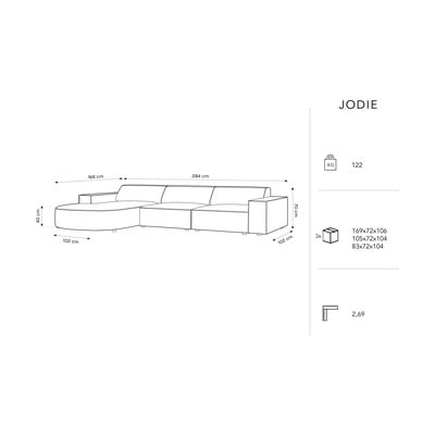 Pohovka Jodie od značky Micadoni Home hneď na prvý pohľad zaujme svojou atraktívnou siluetou. Vďaka vysokopohodlnému polstrovaniu však zároveň poskytuje vytúžený komfort a zaručuje tak ničím nerušený odpočinok. Nízke, na prvý pohľad takmer neviditeľné nôžky sa naopak postarajú o toľko potrebnú stabilitu.