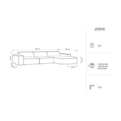 Pohovka Jodie od značky Micadoni Home hneď na prvý pohľad zaujme svojou atraktívnou siluetou. Vďaka vysokopohodlnému polstrovaniu však zároveň poskytuje vytúžený komfort a zaručuje tak ničím nerušený odpočinok. Nízke, na prvý pohľad takmer neviditeľné nôžky sa naopak postarajú o toľko potrebnú stabilitu.