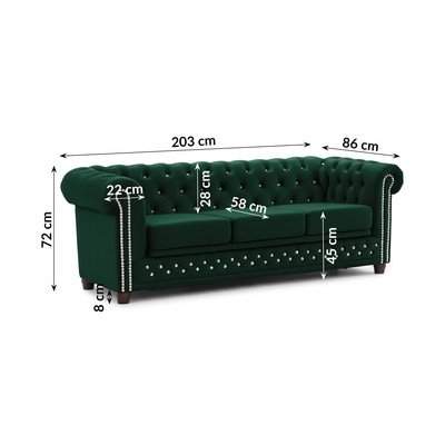 Zamatová, rozkladacia, chesterfield, zelená, vodoodolná/odolná proti škvrnám, dvojmiestna, šírka 203 cm