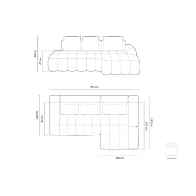 Zamatová, rozkladacia/s úložným priestorom, pravý roh/s leňoškou, zelená, štvormiestna, šírka 275 cm, hĺbka 142 cm, hĺbka sedadla 83 cm