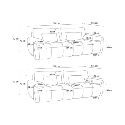 Ženilková, polohovacia, zelená, trojmiestna, šírka 264 cm