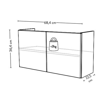 Dobré vedieť: Vnútorný priestor má výšku 36,5 cm a je rozdelený vnorenou policou s rôznymi polohami. Rozmery: 60/65 cm (šírka) x 20,6 cm (hĺbka).
