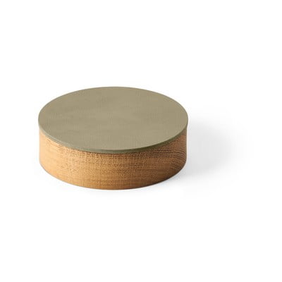 Circle je elegantný úložný box, ktorý sa hodí na ukladanie drobností. Vďaka svojmu okrúhlemu tvaru je ideálny napríklad na uskladnenie podložiek pod poháre, ale poslúži aj na estetické servírovanie alebo na uschovanie šperkov v kúpeľni či korenie v kuchyni. Tento box je vyrobený z európskeho duba a ošetrený rastlinným olejom, veko je potom z recyklovanej kože.