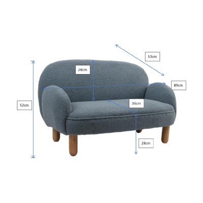 Kresielko má rozmery 56 × 53 × 52 cm (šírka x hĺbka x výška), zatiaľ čo pohovka ponúka viac miesta s rozmermi 89 × 53 × 52 cm (šírka x hĺbka x výška). Oba kusy nábytku zaujmú svojimi zaoblenými tvarmi a mäkkou, príjemnou textúrou. Stabilitu zaisťujú drevené nohy.