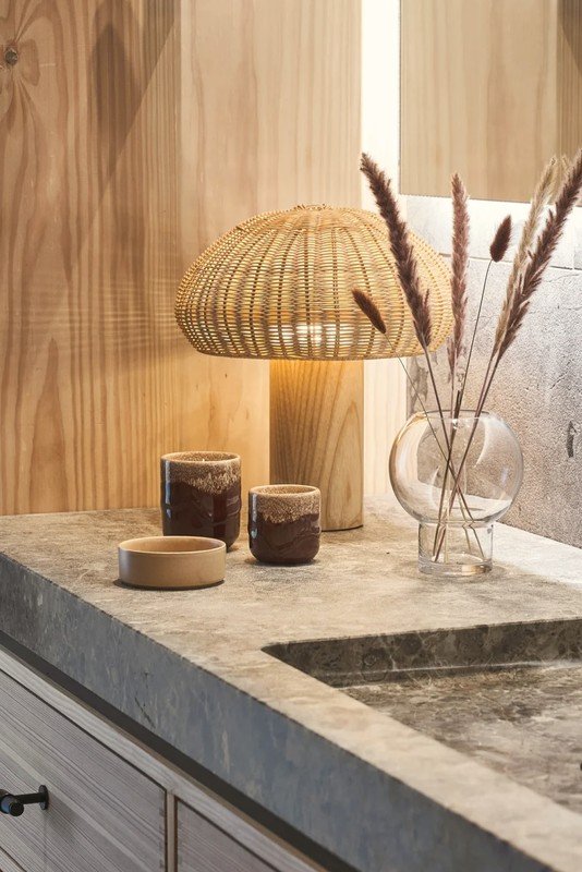 LED, s ratanovým tienidlom, ratanová, na USB, v prírodnej farbe, výška 32 cm
